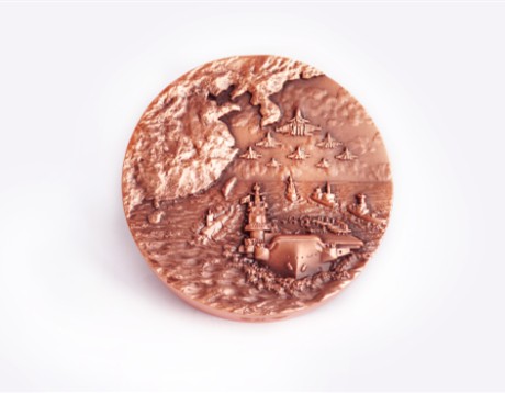 2012年9月25日,我国第一艘航空母舰“辽宁号”正式交接入列。这是我军发展史上的一个重要里程碑,是我国综合国力和国防军事实力走向强大的象征。为纪念这一重大历史时刻,特发行中国第一艘航空母舰纪念大铜章。