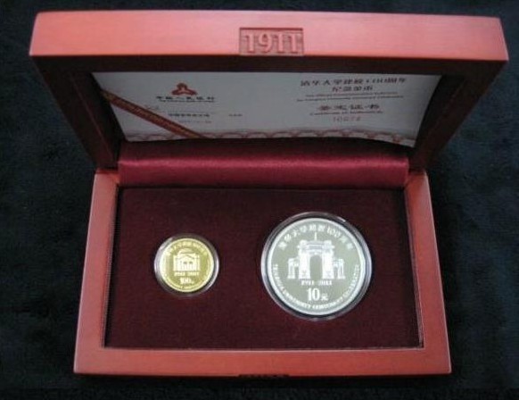 中国人民银行定于2011年7月29日发行清华大学建校100周年金银纪念币一套。该套纪念币共2枚,其中金币1枚,银币1枚,均为中华人民共和国法定货币。