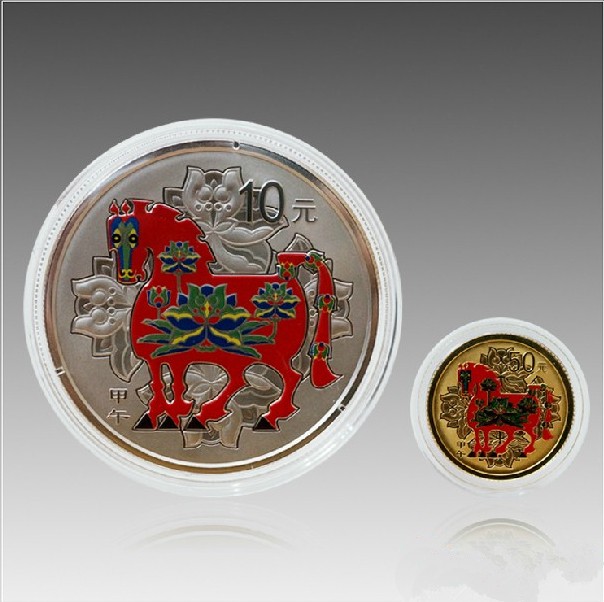 商品名称:2013马年彩色金银币1/10盎司金币+1盎司银币