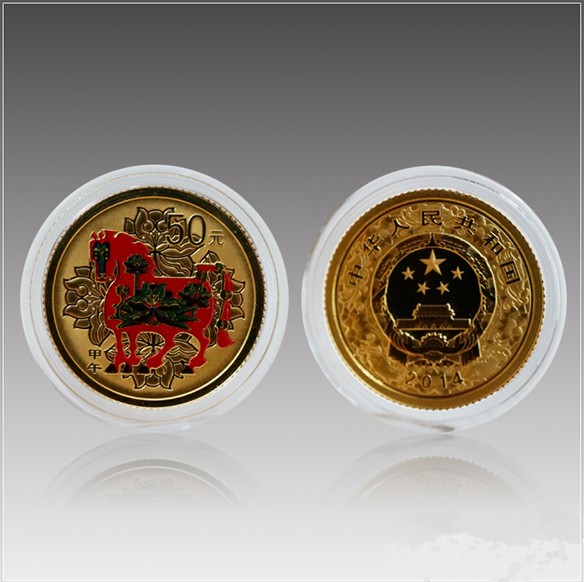 1/10盎司圆形金质彩色纪念币为精制币,含纯金1/10盎司,直径18毫米,面额50元,成色99.9%,最大发行量120000枚。