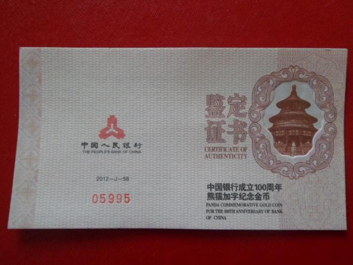 中国人民银行定于2012年4月26日发行中国银行成立100周年熊猫加字金银纪念币一套。该套纪念币共2枚,其中金币1枚,银币1枚,均为中华人民共和国法定货币。