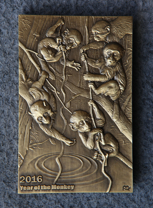 上海新世纪纪念章有限公司第一轮高浮雕十二生肖系列大铜章第三枚,猴年大铜章由著名币章雕刻师王江浩创作,延续了前两枚大铜章的华丽风格,堪称经典,即日起开始预订(预计11月底发货),敬请关注!