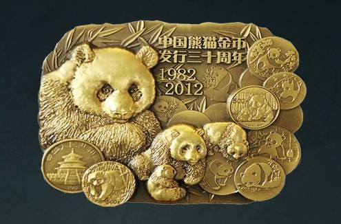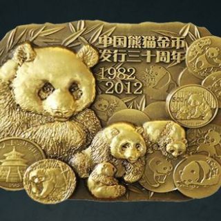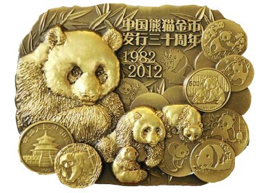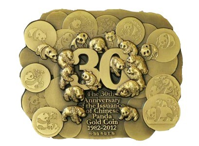正图介绍:中国熊猫金币发行30周年纪念大铜章,由中国金币总公司发行,上海造币有限公司铸造,上海金币投资有限公司总经销。纪念章正面展示了熊猫从大自然走上金币的情景,同时镌刻“中国熊猫金币发行30周年1982--2012”字样。