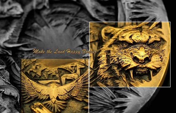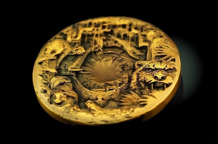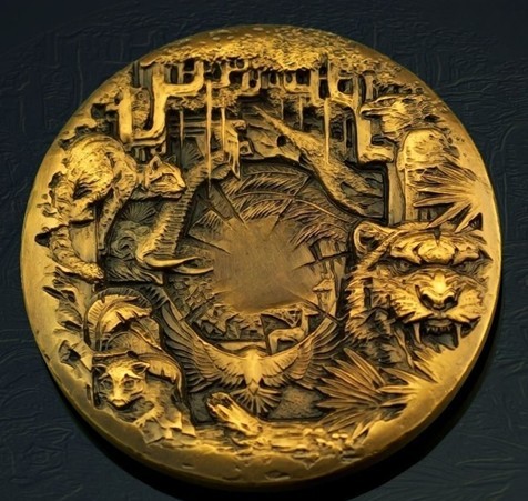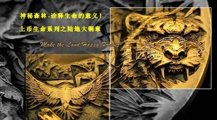 该章直径80毫米,为生命系列第2枚。 题材构思巧妙 ,雕刻细致严谨! 产品特点: 铜章名称:生命系列之--陆地大铜章 铜章设计者:朱熙华 铜章雕刻者:朱熙华 铜章规格:80MM(直径) 铜章材质:黄铜 发行数量:1000枚 正面图案:陆地动物图案 背面图案:陆地及树叶图 铸造单位:上海造币厂
