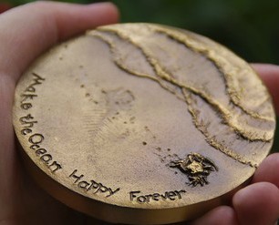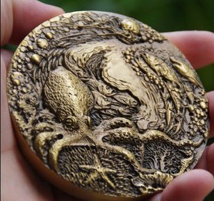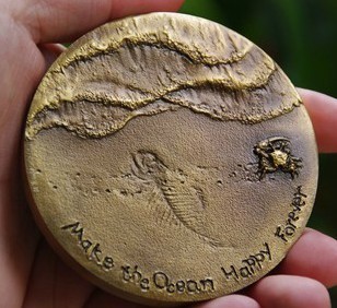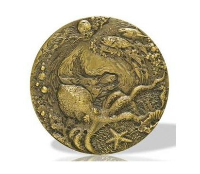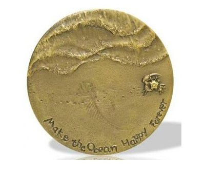 “生命”系列铜制纪念章由上海造币有限公司铸造。黄铜材质,直径80毫米。本章为“生命”系列的第一枚,主题是海洋,正面图案为舞动的海洋生灵;背面图案为平静的海浪与沙滩。限量铸造1000枚。