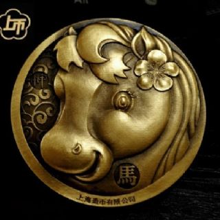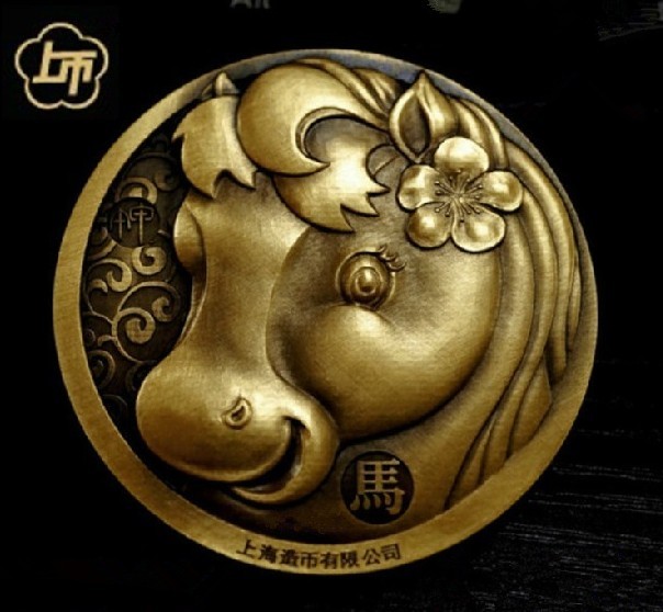 正面图案:卡通马,镌有“马”以及“甲午”等字样