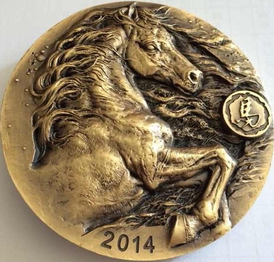 正面:飘逸的骏马,镌有“马”及“2014”字样