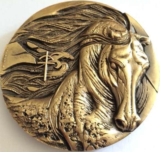 背面:唐朝骏马首部图腾造型,镌有“午”字篆书体和“HORSE”英文字样