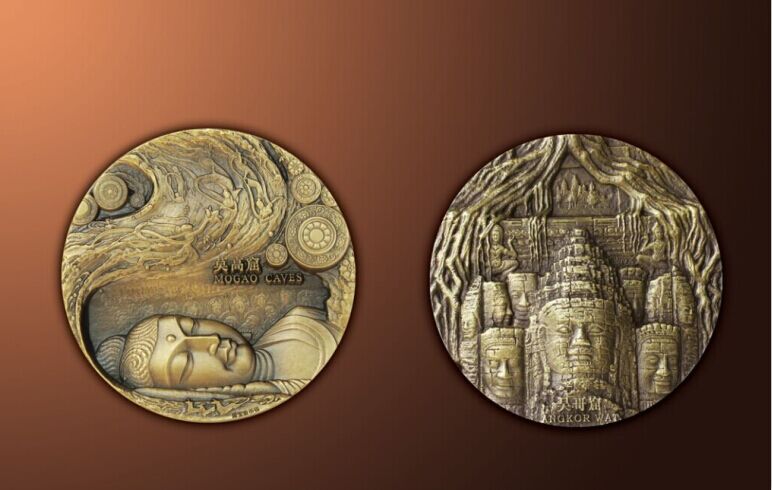 中柬建交55周年(莫高窟与吴哥窟)大铜章及浇铸章