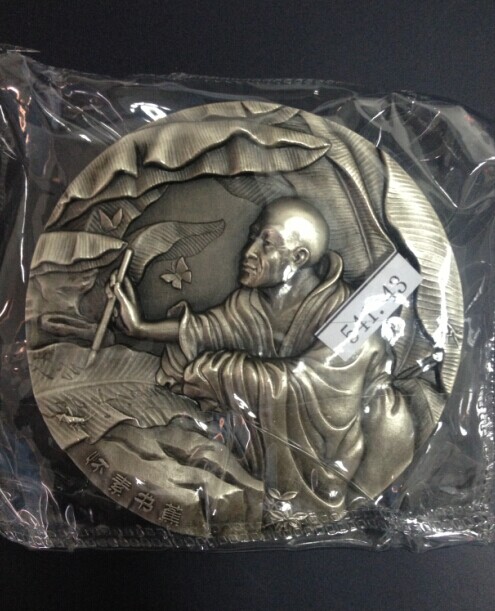 中国书法,是以汉字为艺术表现对象,通过点、勾、划、竖的线条造型,运用缓、急、轻、重的笔法技巧,来展示汉字的完美,从而形成中华民族所特有的书法艺术。数千年来,中国书法艺术硕果累累。其篆、隶、楷、行、草各种书体,各有人物登峰造极。其中草体因书写随意、自由奔放,易抒发感情和显露个性及造就深远意境,深受历代书家所推崇。在中国草书艺术史上,唐代大书法家怀素,以其勤学精研的人格魅力和赏心悦目的书法力作,从唐代中叶开始,一直受到历代书家顶礼膜拜,敬仰了一千二百多年。怀素,字藏真,湖南零陵人。生卒于(737-799年)?幼年聪明好佛,十岁出家为僧。其平日经禅之暇,酷爱书法,因贫穷无纸墨,在寺院附近种植芭蕉,用蕉叶代纸,临帖挥毫,不管酷暑寒冬,从不间断,留下“怀素书蕉”的千古美名。怀素爱酒,每当兴起时,不分墙壁、衣服、器皿,任意挥写,狂作大草。豪迈气势如“骤雨旋风”,直到“满壁纵横千万字”。一气呵成却极少失误。怀素草书名作,传世较多。计有千字文、清净经、圣母帖、藏真帖、律公帖、自叙帖、四十二章经等。其用笔如行云流水,豪放飘逸,刚健走于婀娜之中,遒劲行于婉媚之内,章法尽显欹侧取妍的艺术效果。后代有书家赞为“墨色纸气精彩动人,其中纵横变化发于毫端,奥妙绝伦有不可形容之势”。无疑,怀素是中国书法史上可领一代风骚的草书大家。为展示中国书法艺术精髓,感受中国古代大书法家怀素的神品韵味,我们特铸“怀素书蕉”铜章。人物浮雕极高,栩栩如生,书法雕刻精细,极尽精美,艺术效果具有不可抗拒的视觉冲击力。并特意小量发行,弥足珍贵。