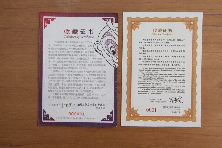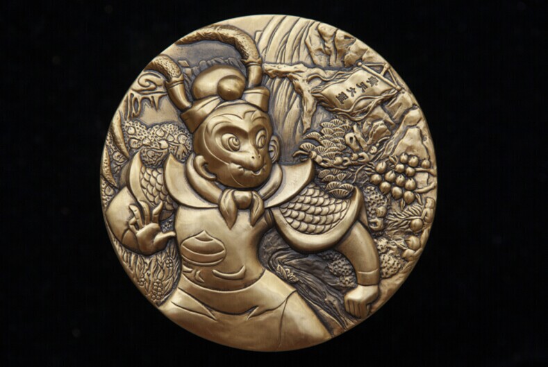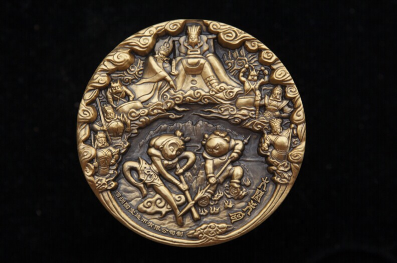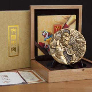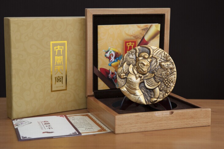 为纪念首部国产动画巨作“大闹天空”问世五十周年,特别铸造《大闹天宫》铜镀金章。